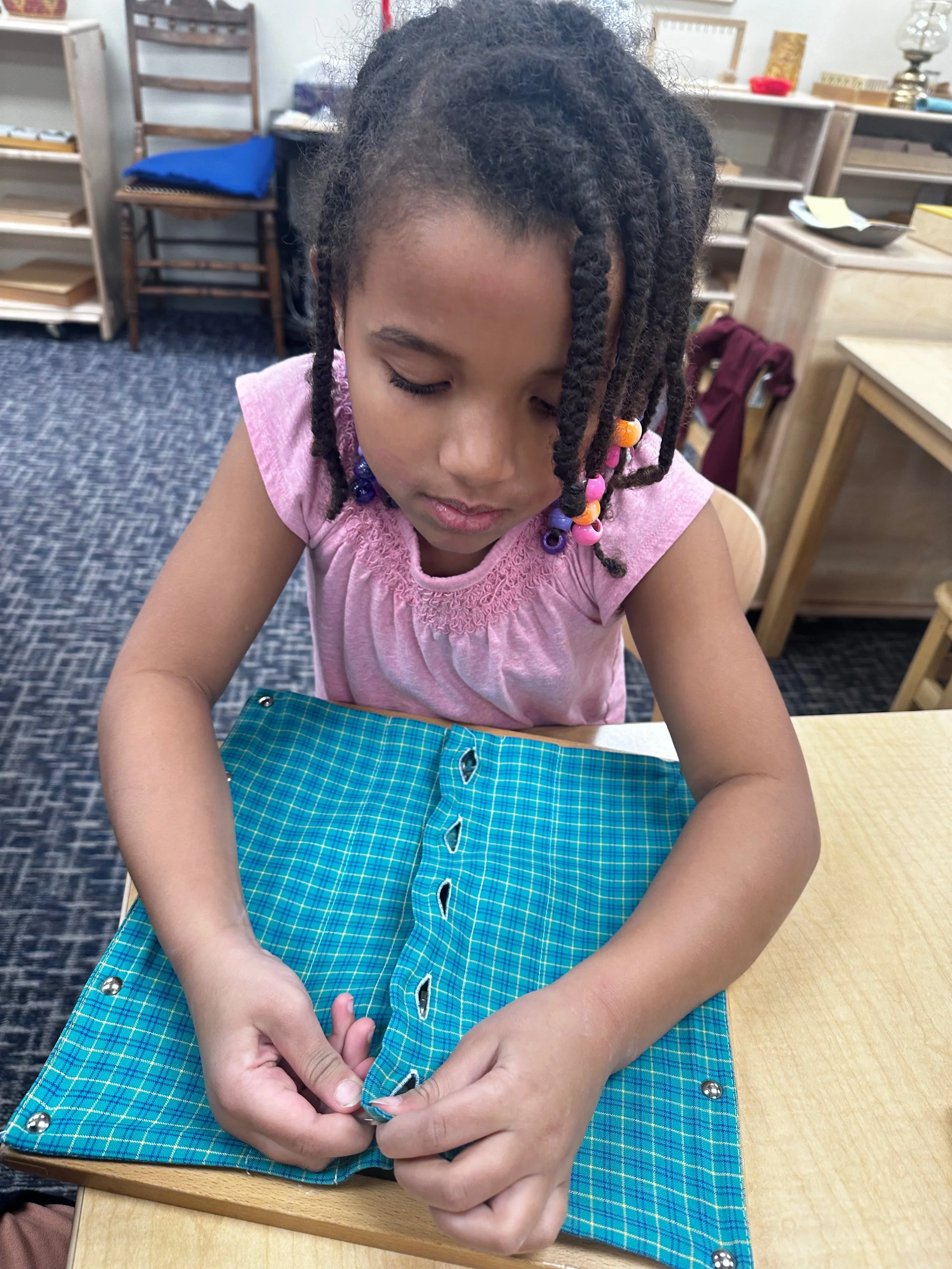 The Children’s House program has an emphasis on development of practical life skills. Through this work, fine motor skills are strengthened, concentration is increased, and new skills are learned. All of these activities help prepare each child for further work and real life experiences.